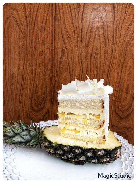 Duas camadas de mousse de leite em pó e doce de abacaxi
